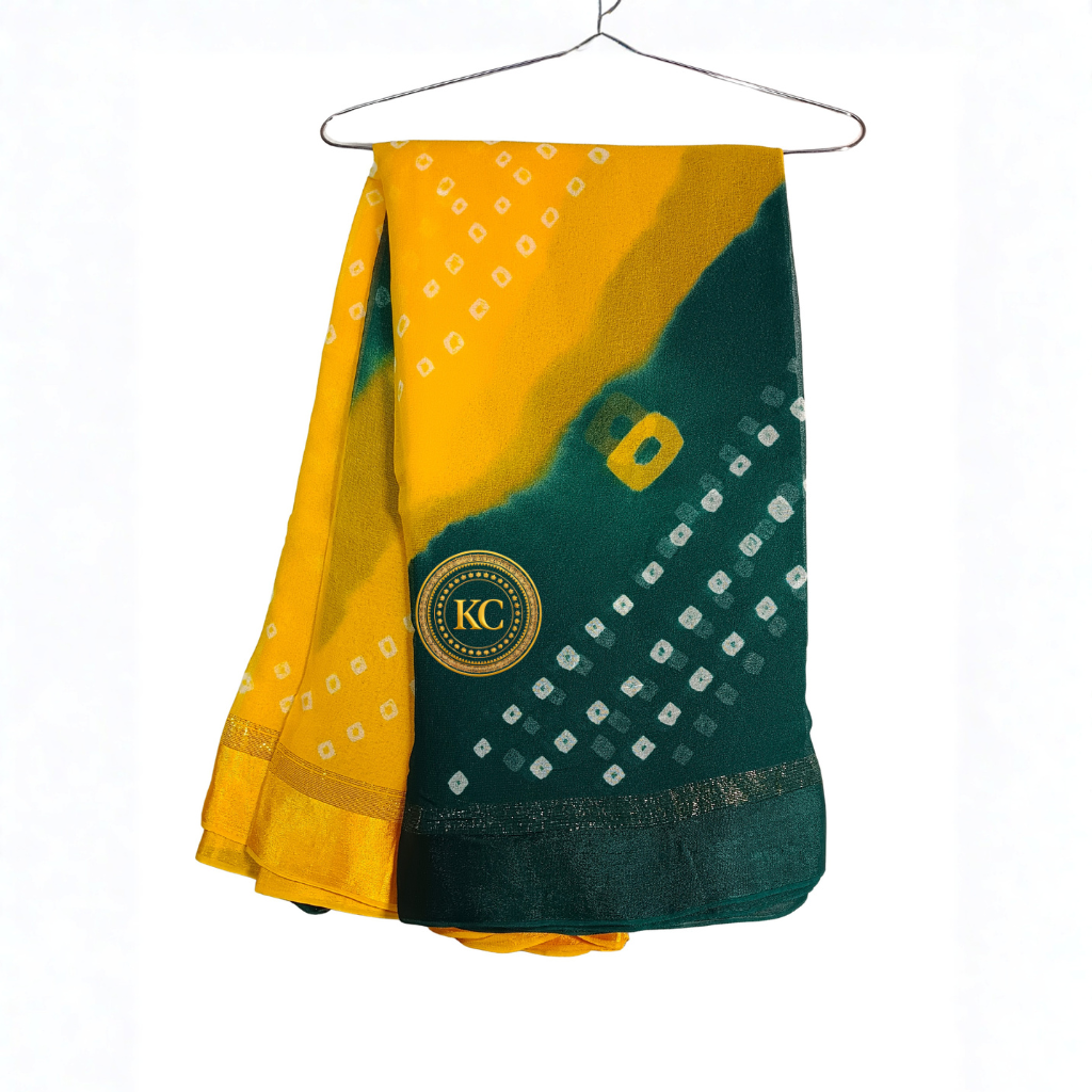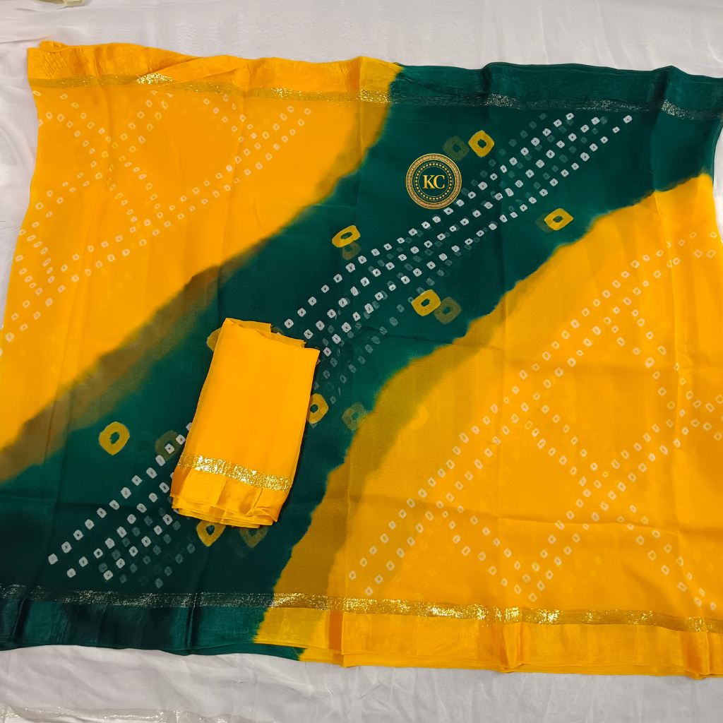 Pure Georgette Bandhej Saree with Satin Border with Blouse