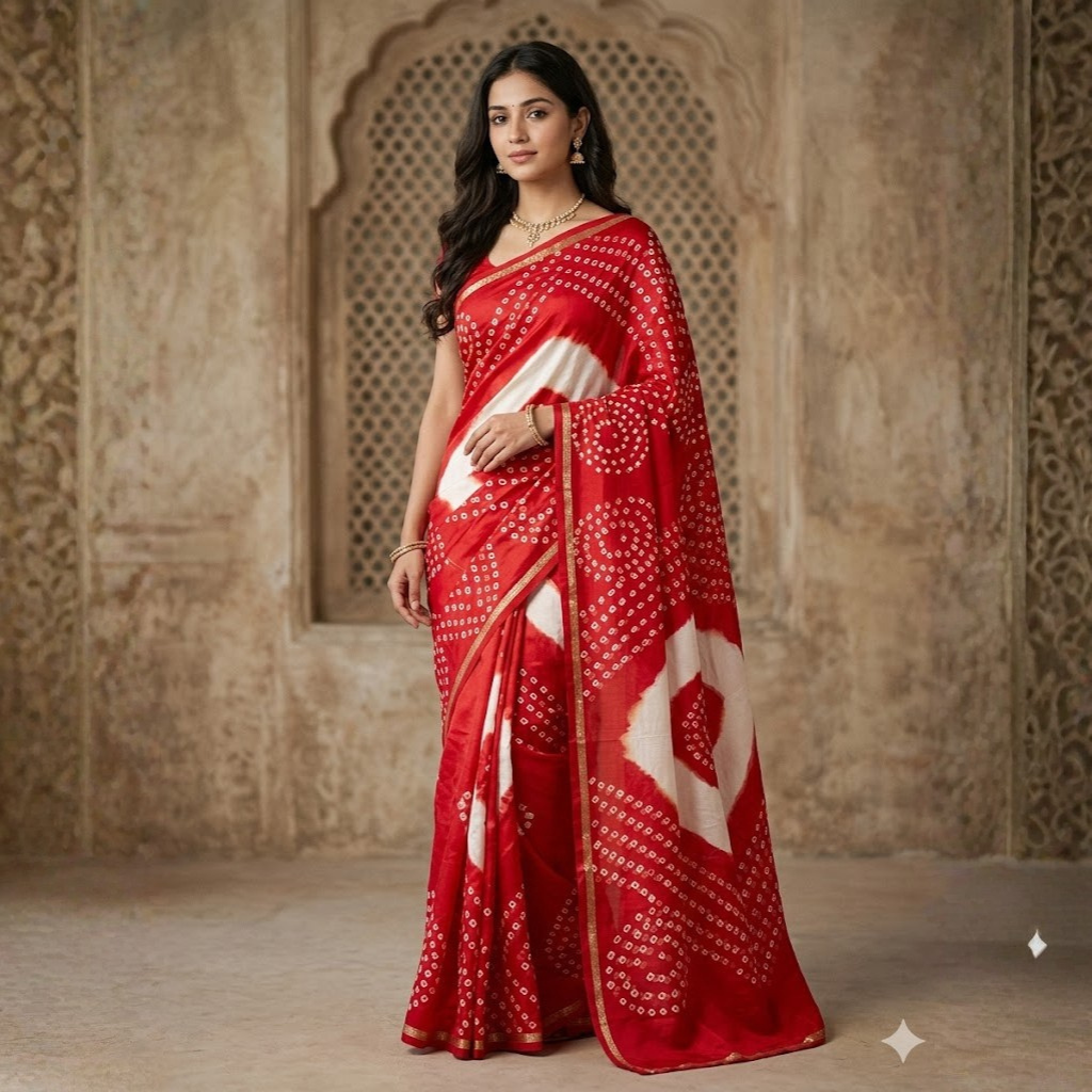 | Work | Authentic Hand-Tied Bandhej (Traditional Tie-Dye) |