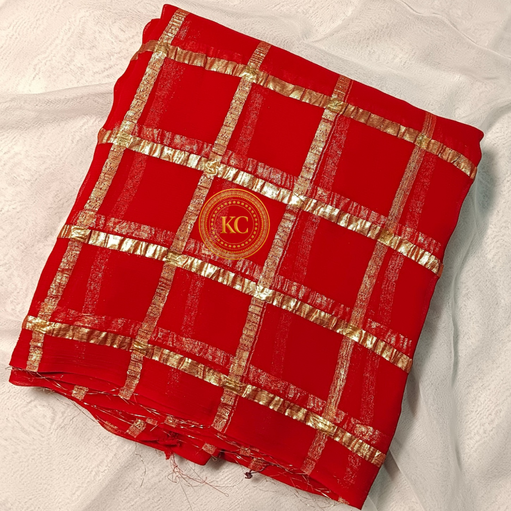 Work Woven Golden Zari Checks (Choktha Pattern)