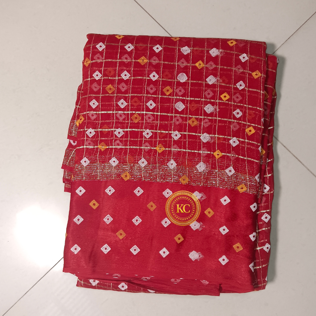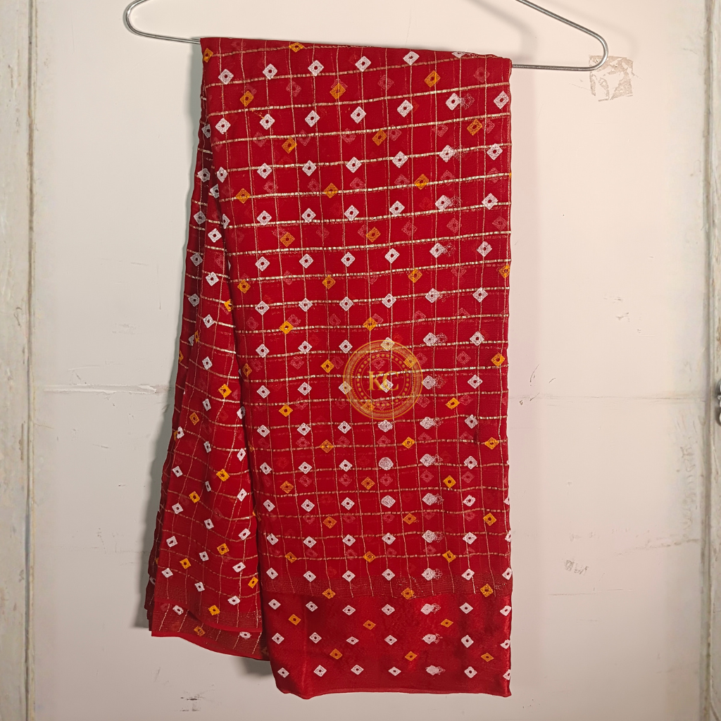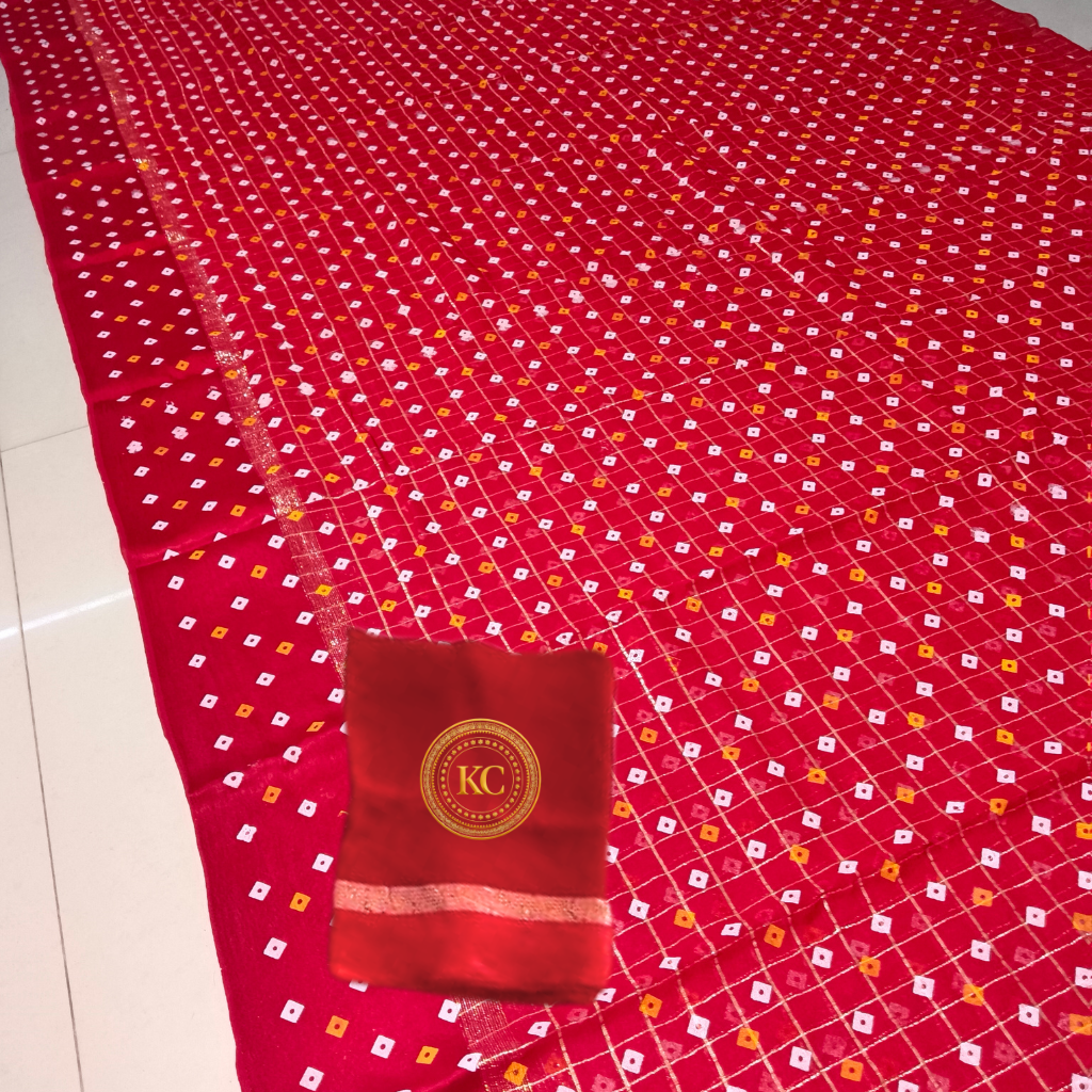 Work Authentic Hand Bandhej and Zari Grid Pattern