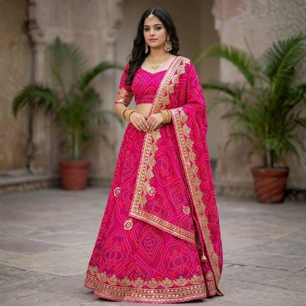 When you purchase Doria Bandhej Lehenga with Gota Patti from us, you choose authenticity and comfort.