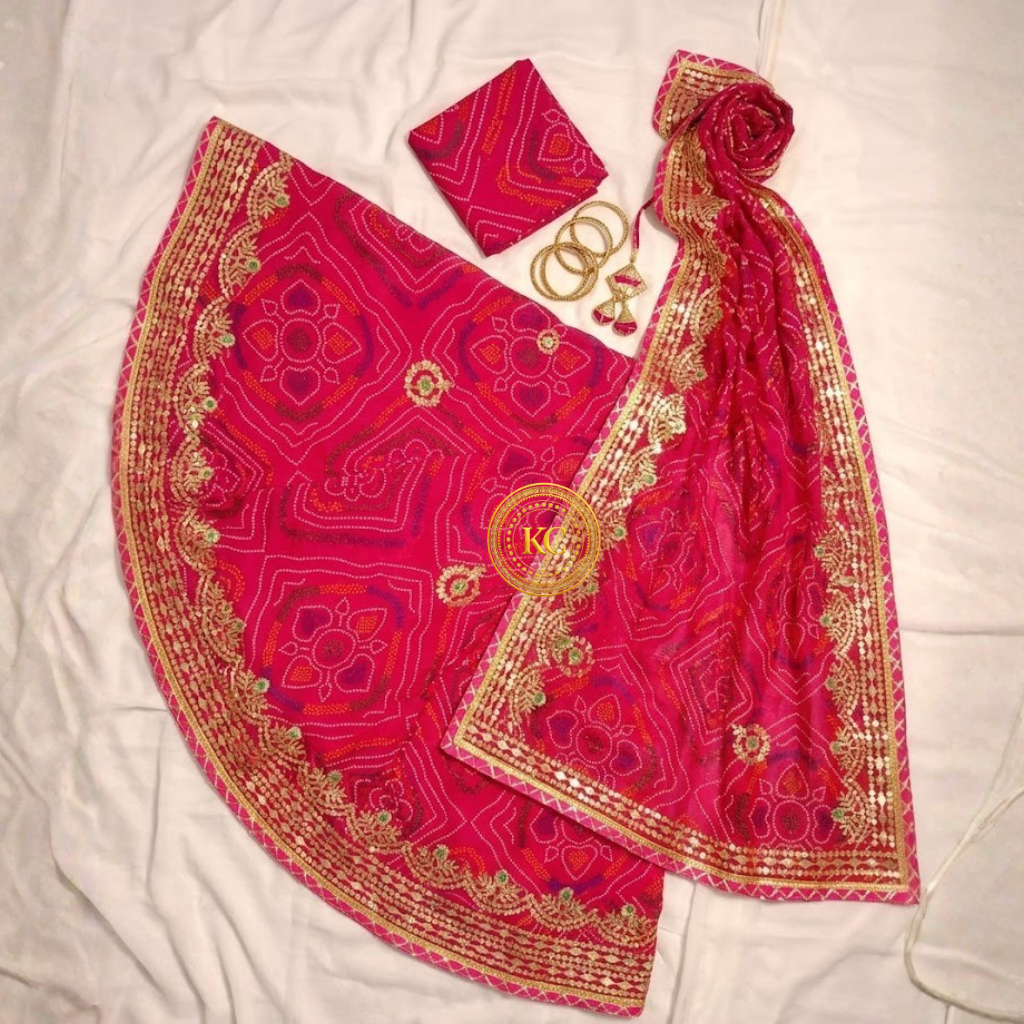 | Work | Traditional Hand Bandhej & Heavy Gota Patti |