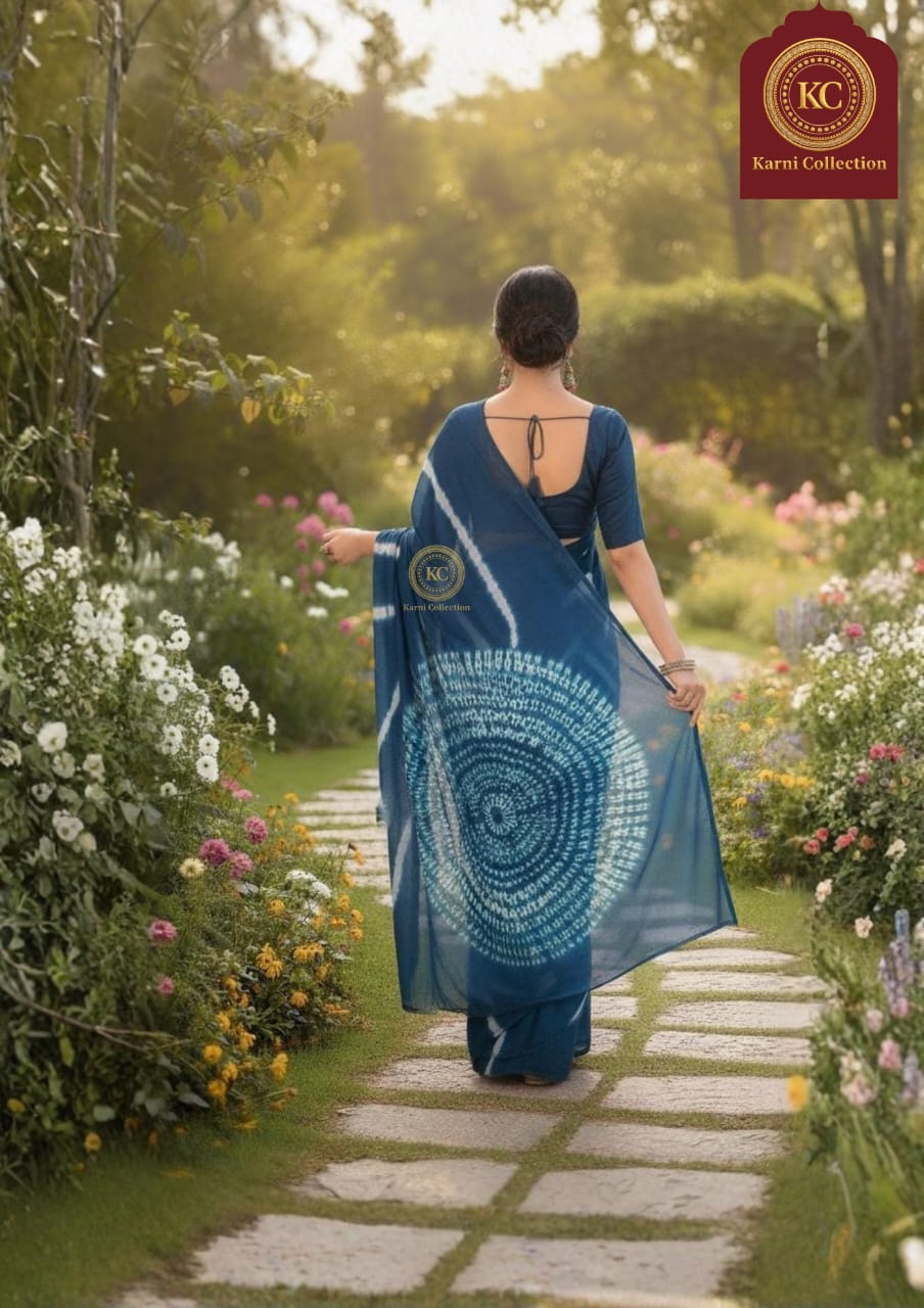 Mor Kanthi Saree,Teal Chinon Saree,Peacock Blue Saree,Pure Leheriya Bandhani,Designer Tie-Dye Saree,Silk Chinon Saree